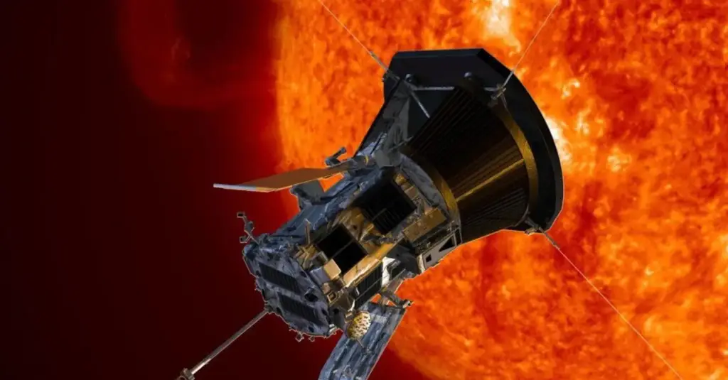 Parker Solar Probe – is an unmanned NASA space probe, launched in 2018, whose goal is to study the Sun’s outer corona from a record-breaking close distance. It is the first object in history to directly „touch” the Sun, flying through its atmosphere to investigate heating processes and the solar wind. It is the fastest human-made object. In December 2024, it approached at a record-low distance (approx. 6 million km from the surface), reaching a speed of over 690,000 km/h (approx. 192 km/s) and took photos of the Sun’s atmosphere from the closest distance we have ever seen. The probe is equipped with an advanced thermal shield made of carbon composites, which protects the instruments from temperatures exceeding 1300 degrees C. This mission is part of NASA’s „Living with a Star” program, aimed at understanding aspects of the Sun-Earth system that affect life and technology on Earth, including satellite communication.