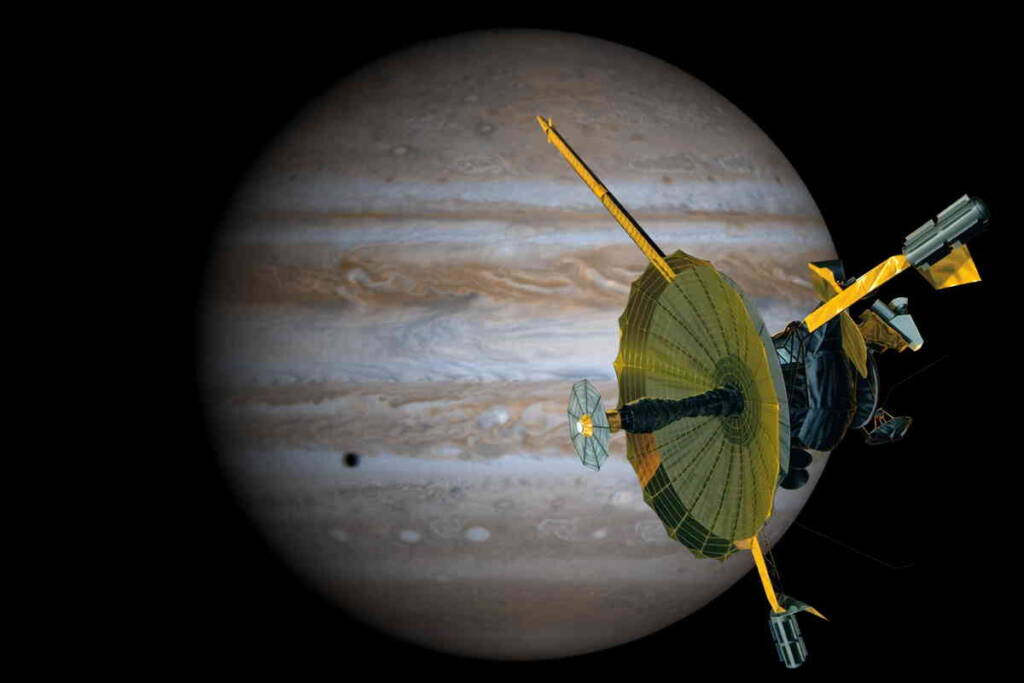 Galileo – is an American unmanned NASA space probe, launched by the space shuttle Atlantis in 1989 to explore Jupiter, its moons, and atmosphere. During the journey, it performed flybys of Venus, Earth, and the Moon, and was the first to explore asteroids (Gaspra and Ida). It was the first artificial satellite of Jupiter (since 1995) and the first in history to send a probe deep into its atmosphere, as well as closely studying asteroids. The mission ended in 2003 with the intentional burning of the probe in the planet’s atmosphere.