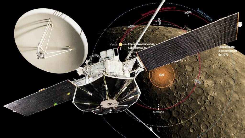 Mariner 10 – the last unmanned space probe from the Mariner program launched on November 3, 1973, by the American space agency NASA. It was sent about two years after Mariner 9 reached Mars. The goal of the Mariner 10 mission was to study the surface and physical characteristics of Mercury and Venus, as well as to study interplanetary space. It is the first human-built vehicle to reach Mercury and the first space probe to visit two planets (Venus and Mercury) and use gravity assist to change its orbit. The probe used Venus’s gravity (flyby on February 5, 1974) to reduce speed and head towards Mercury.