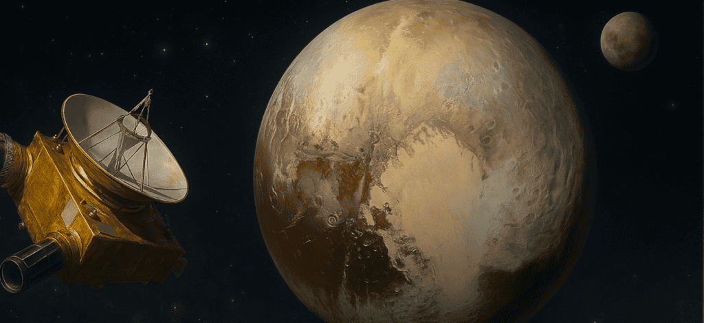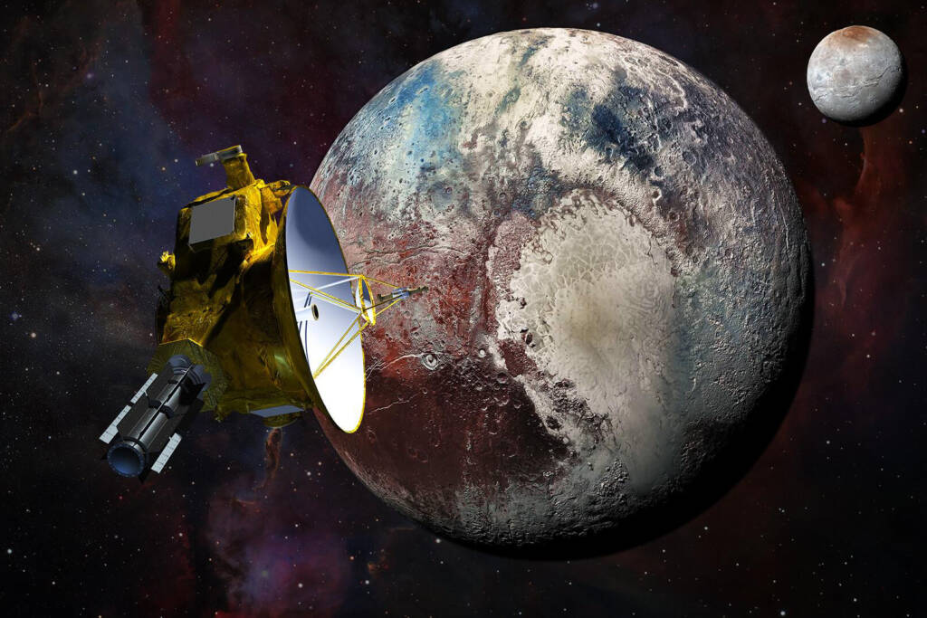 New Horizons – is an unmanned NASA space probe, launched in 2006 using an Atlas V 551 (AV-010) rocket. The main goal was to explore Pluto, its moons, and objects in the Kuiper Belt. The first flyby mission past Pluto was realized on July 14, 2015; the probe approached Pluto to a distance of about 12,500 km, as well as its moons (Nix, Hydra, Kerberos, and Styx), discovering, among others, a diverse landscape and active geological processes and providing detailed photos of this dwarf planet. The spacecraft, weighing 478 kg, was primarily intended to study objects from the Kuiper Belt during the flyby and take the most accurate photos of Pluto to date. It is powered by a radioisotope thermoelectric generator on plutonium (RTG), which allows it to operate for decades. It is located over 8 billion kilometers from Earth (as of the end of 2023), traveling beyond the Solar System.